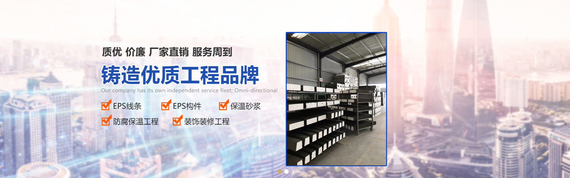 是一家專業(yè)生產各種型號的EPS線條、GRC線條、保溫砂漿,防腐保溫工程和裝飾裝修工程施工為主的高科技民營企業(yè),專業(yè)致力于外墻保溫材料和外墻裝飾線條的生產和施工工程;